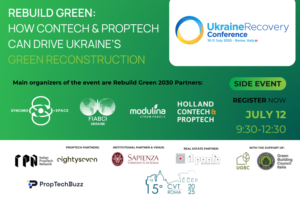 At URC2025, we welcome all conversations around cooperation, co-financing, pilot implementation, and knowledge exchange. We also invite you to our side event organized under the Rebuild Green 2030 program, which will bring together contech and proptech innovators to showcase how technology can accelerate green recovery. REGISTER BY THIS LINK: https://forms.gle/QWtdvgpMu1noRyw68.