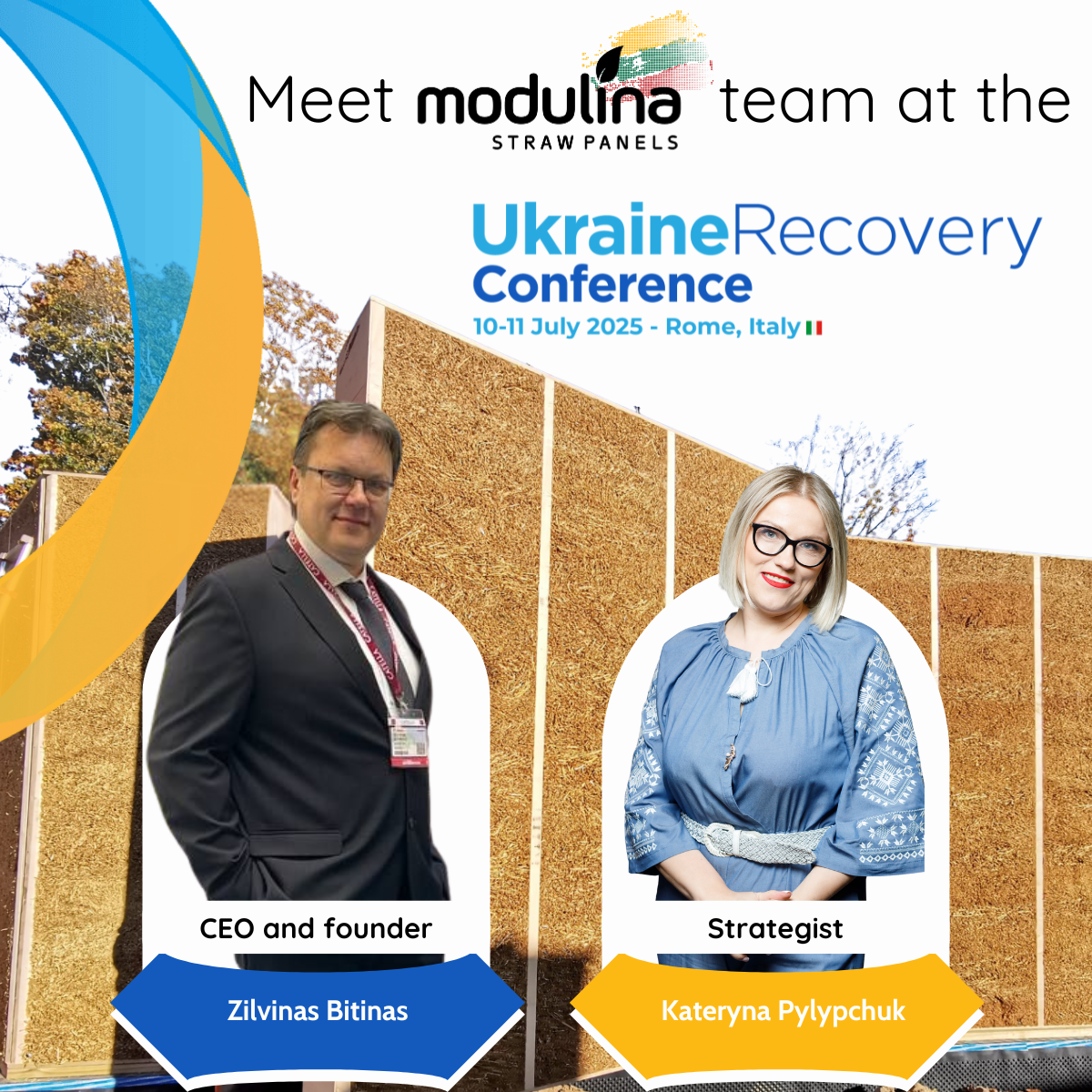 We are proud to announce that Modulina Straw Panels has been selected to represent green building technologies at URC2025. Our prefabricated straw panel system offers a breakthrough in reducing the massive CO₂ emissions typically associated with traditional construction. Our technology reimagines straw — an abundant agricultural by-product in Ukraine — as a sustainable, circular building material, processed in mobile factories and assembled directly on-site, minimizing transport and construction waste.