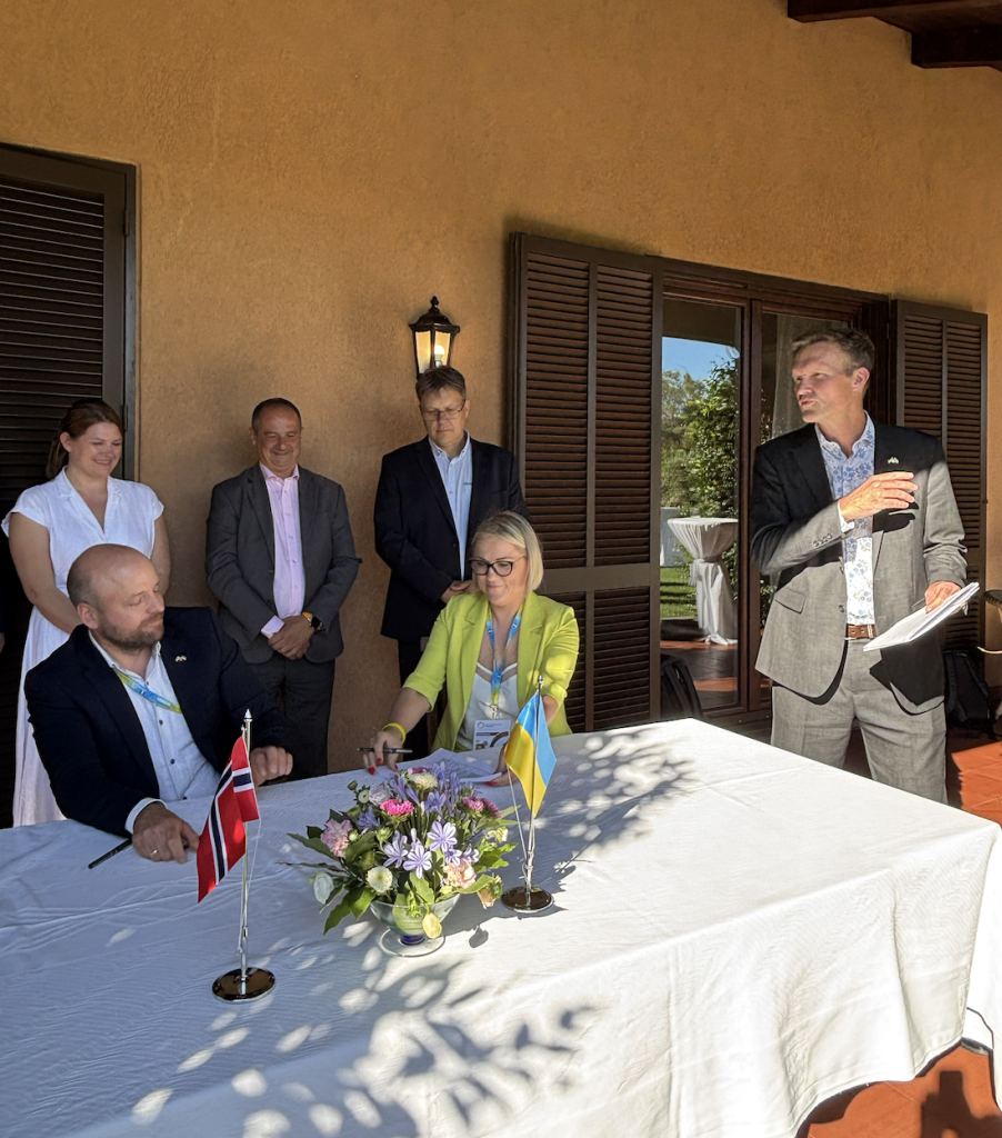The signing took place under the patronage of Johan Vibe, Norwegian Ambassador to Italy, with the honored presence of Cecilie T. Myrseth, Minister of Trade and Industry of Norway.